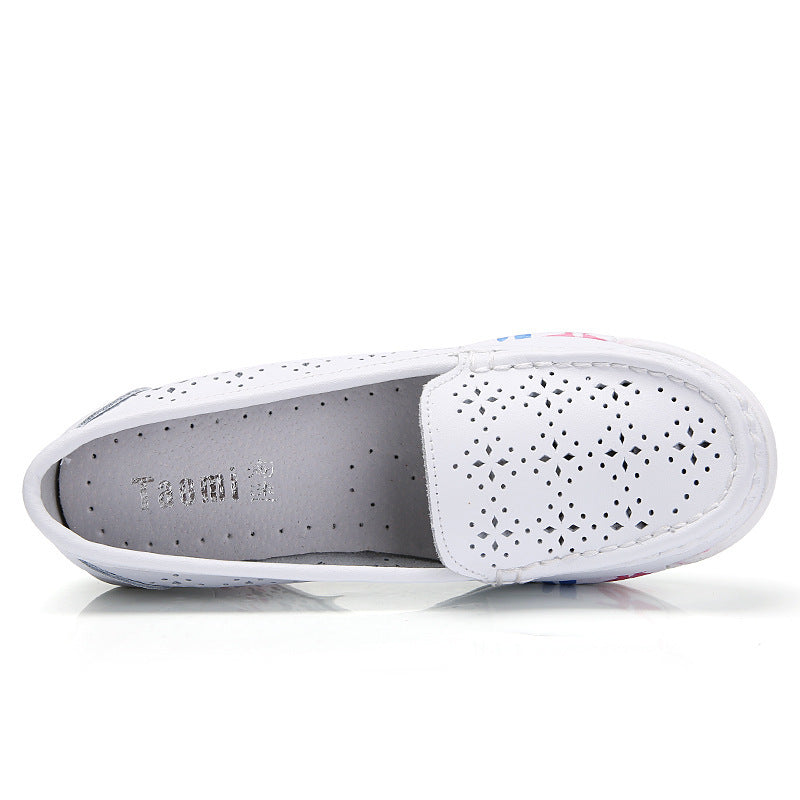 Hollow Leather Floral Women's Single Shoes Leather Nurse Platform Shoes
