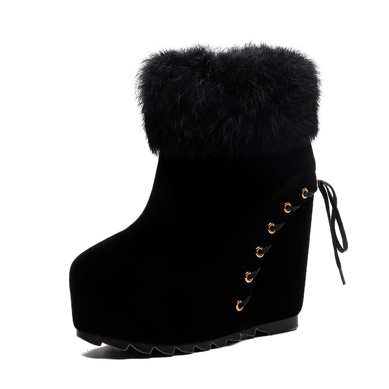 Real Rabbit Fur Inner Heightening Women's Wedge Heel Fashion Short Boots