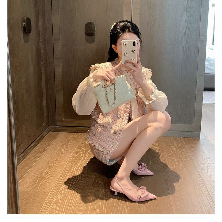 Small Sharp Point Low-cut Hollow Flower High Heels For Women