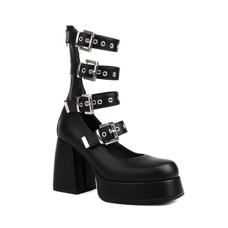 Sweet Cool Chunky Heel High Heel Leather Shoes